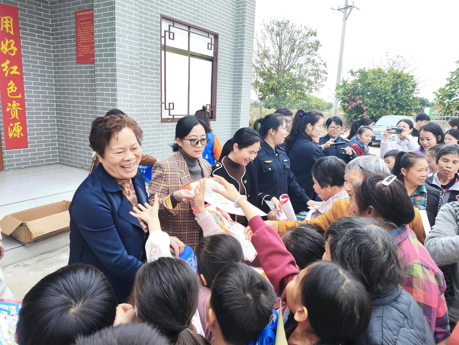 春节前夕,灵山县妇联联合县老促会、县人力资源社会保障局、昊扬食品有限公司等多家单位和企业,到佛子镇桂山村开展“红韵铸魂促就业 暖心‘童’行伴成长”——灵山县春节前妇女创业就业暨寒假儿童关爱服务活动。活动将红色教育与妇女创业就业需求、寒假儿童关爱服务深度融合,让革命老区村的妇女儿童在红色浸润中感受温暖、收获力量。